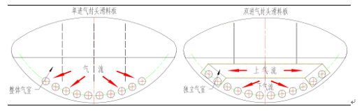 進氣管道使用全氬弧焊工藝,取消無效密封面,增加進氣可靠性。管道對稱布置,保證前后封頭進氣相同速率和壓力平衡,增加進氣穩(wěn)定性。鋁合金管道具有更好的吸能減震效果,減弱進氣波動對輸送效果的影響。單進氣管道,結構簡潔,標準化程度高。