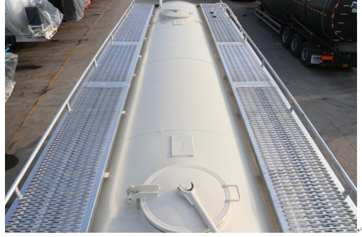 使用5系鋁合金板材,整體沖壓硬化成型,輕量化設計同時兼具韌性,保證足夠的使用強度。對比于普通碳鋼走道臺,減輕重量39%。走道臺鋁合金材質(zhì),具有更好的抗氧化性、抗污染性,有效防止罐頂灰塵的污染,減輕后期維護成本和時間。