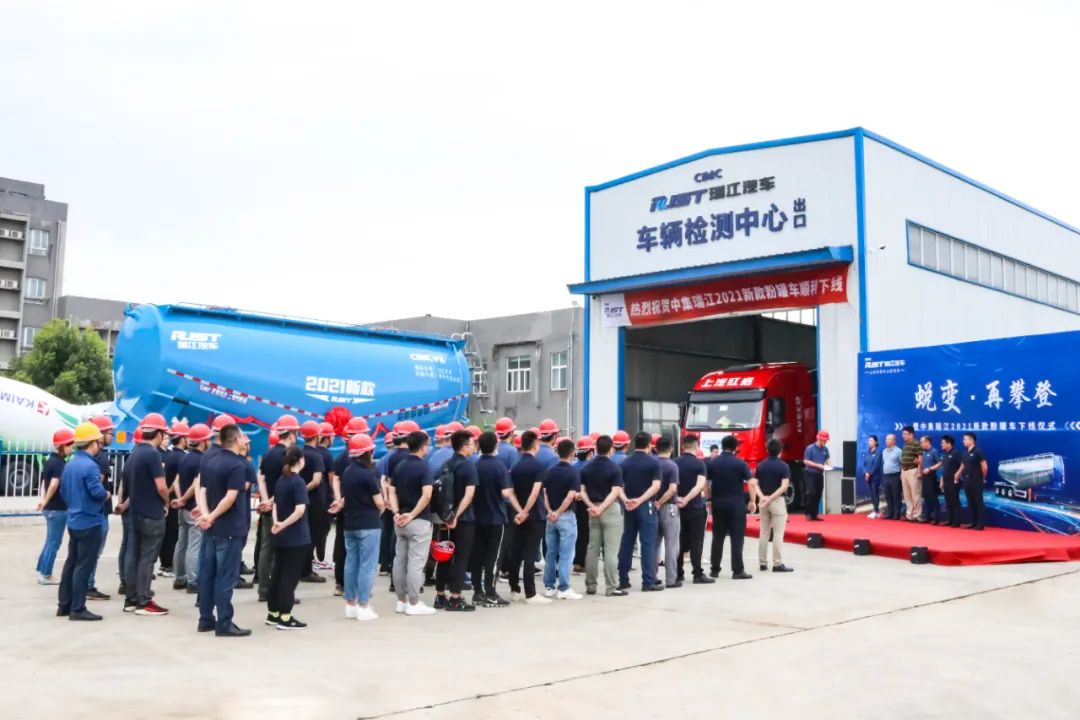 2021新款粉罐車(chē)的順利下線,是喜悅,是激勵(lì),也是希望!中集瑞江始終記住“全速全力,奮力向前”,成就世界級(jí)夢(mèng)想!以2021新款粉罐車(chē)下線為新起點(diǎn),將再接再厲,再創(chuàng)標(biāo)桿,再鑄輝煌!
